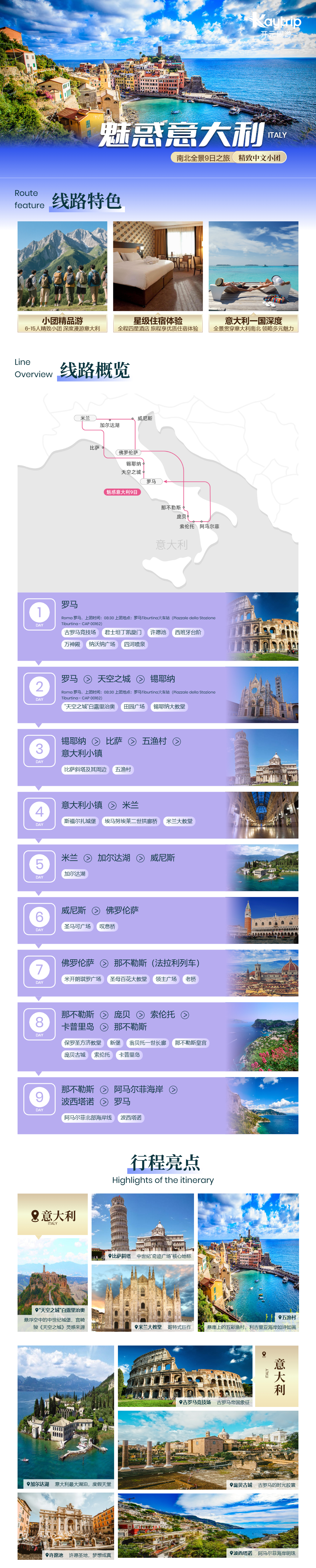 路线名称:魅惑意大利▪南北全景9日之旅【精致中文小团】< 罗马上下>